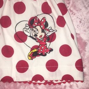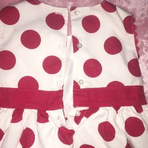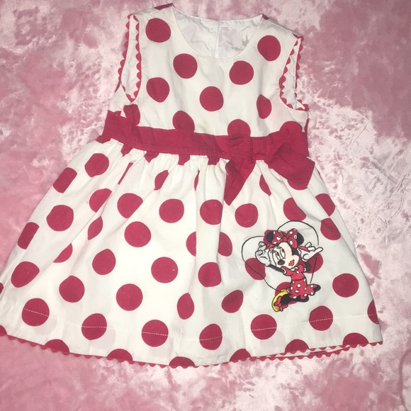 Minnie Mouse dress Scalloped edges on arms holes and bottom of dress. Built in liner Cute red bow on front Button back