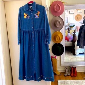 Vintage Winnie the pooh and friends denim maxi dress size M