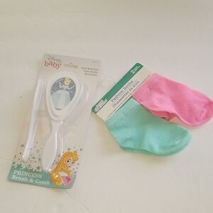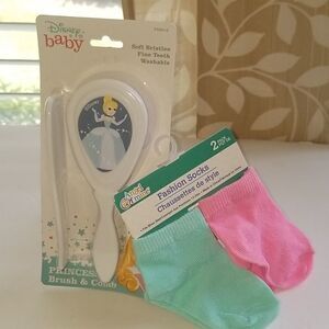 Brand new in original packaging. Disney Baby hair brush and comb set / Angel of Mine sock set 2 pair set.