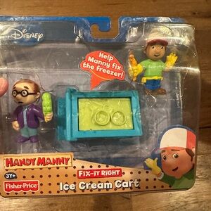 Disney 2008 Fisher Price Handy Manny Fit It Right Ice Cream Cart toy , new in box , box does appear if become unglued on each side as seen n pic but it has never been taken out of box . All sales final