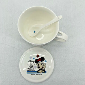 Disney 90th Anniversary Ceramic Soup Mug w/Lid & Spoon Mike-J Co Minnie Mouse
