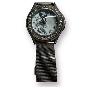 Disney Accutime Quartz Wristwatch Minnie Mouse CZ Bezel Steel Mesh Band MN2074CV