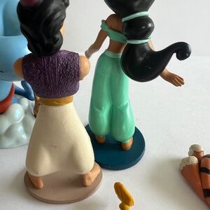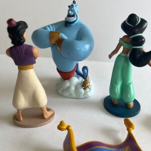 Disney Aladdin Figurine play set, cake topper 5 toy figurines. Aladdin, Genie, Jasmine, Rajah and the magic carpet. Preowned please see pictures.