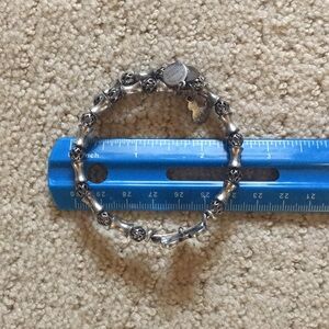 The little bead charms on the silver bracelet have faded and darkened over time.
