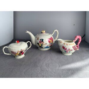 Disney Alice In Wonderland Porcelain Tea Set Teapot Sugar Bowl & Creamer Danby M