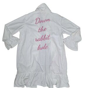 Disney Alice In Wonderland White Robe Embroidered Pink Detail Ruffled Sleeve M