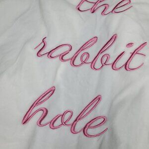 This delightful robe features a charming design inspired by Disney's Alice in Wonderland. Adorned with pink embroidery, it adds a whimsical touch to your loungewear. The ruffled sleeves and hemline offer a playful flair, while the soft material ensures comfort. Perfect for cozying up on a lazy day.