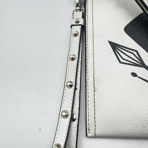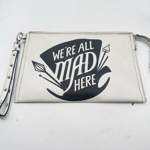 Disney Alice through the looking glass collection were all mad here black and white faux leather clutch/wristlet with a studded strap-exterior open pocket-zip closure-lined interior with a zip and open pockets