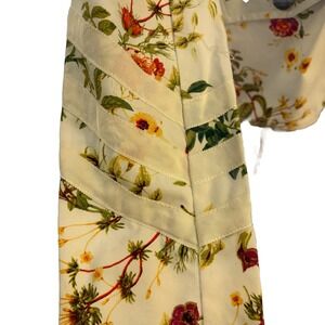 This Disney Alice Through the Looking Glass Women Floral Jacket in size medium is a designer piece made from 100% cotton. The jacket features a beautiful floral pattern, long sleeves, a button closure, and a short length, making it perfect for a party or cocktail occasion. With its lightweight design, this jacket is ideal for the fall and spring seasons. The multicolor accents and basic jacket style add a touch of whimsy to any outfit, while the brand's association with Disney adds a touch of magic. Perfect for adding a pop of color and whimsy to your wardrobe.
