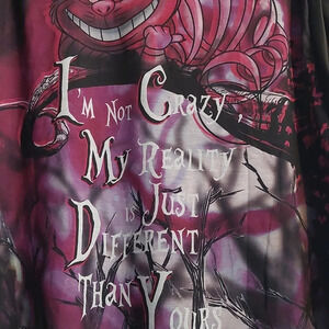 Disney Alice in Wonderland Cheshire Cat leather trim Graphic Sleevless Shirt L