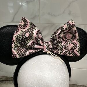 Disney Animal Kingdom Loungefly Minnie Minnie Headband Ears Pink Snakeskin NEW
