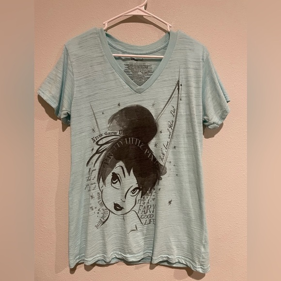 Disney Aqua Tinkerbell V neck tee shirt. Size L