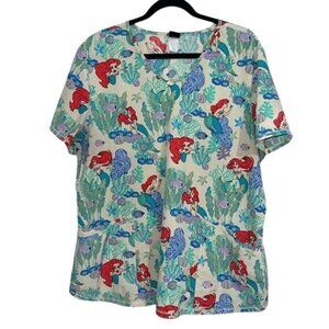 Disney Ariel Little Mermaid Scrub Top 2X V-Neck Short Sleeve