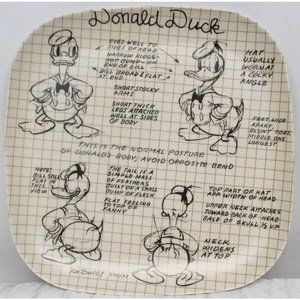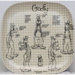 Disney Artist Sketch Bamboo Plates 4 Piece Set Mickey Mouse Goofy Square Grid