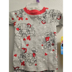 Disney 12 Month Boys Mickey & Minnie Mouse Gray & Red Valentines Unisex Set - can be worn as pajamas or a regular casual set