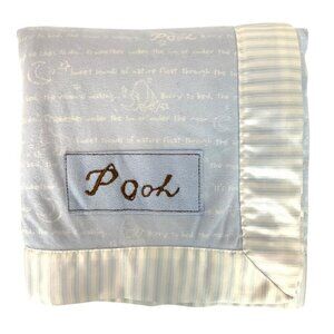 Disney Baby Classic Pooh Blue Plush Blanket With Satin Trim Embroidered Logo