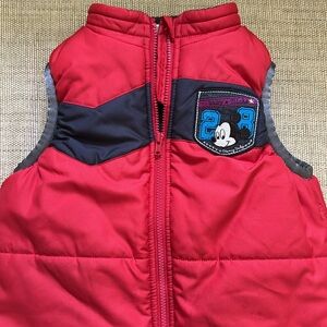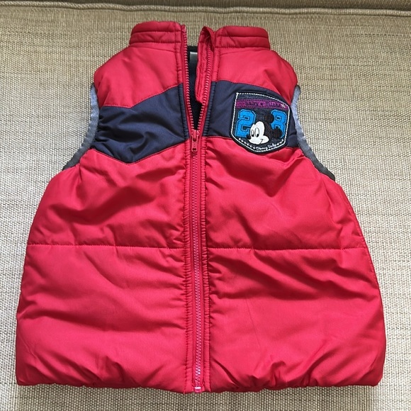 Disney Baby Fleece Lined Zip Up Quilted Vest Mickey Patch Left Chest Flaw