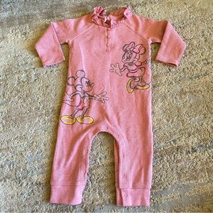 Disney Baby Girl Mickey and Minnie Romper Waffle Cotton Snap Legs Pink: 24 mths