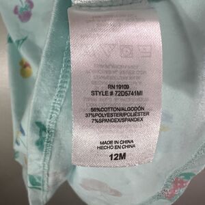 This Disney Girls Dress in size 12 months is a light blue color with a Minnie Mouse cherry pattern, perfect for a casual occasion. Made from a blended fabric of polyester and spandex, the dress features a round neck, short cap sleeves, and a pullover closure. The knee-length fit & flare style dress also includes a cute bow accent, making it a fun and playful choice for the summer and spring seasons. Made by Disney, this dress showcases the beloved Minnie Mouse character, ideal for any young girl who loves cartoons and novelty items.