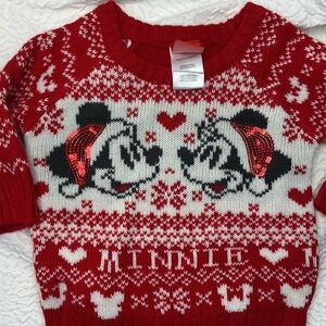 Disney Baby Girls Red Mickey & Minnie Christmas Sweater Size 6-9 Months NWOT