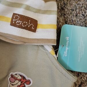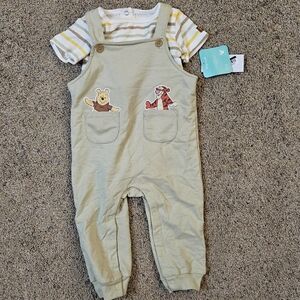 Adorable Disney baby overalls featuring Winnie the Pooh and Tigger, paired with a striped shirt. Perfect for playful days.