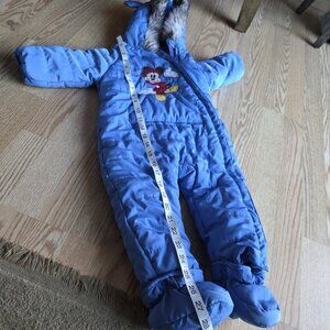 Disney Baby Mickey Mouse Blue winter One Piece Hooded Snow suite 9-12 Months Vtg