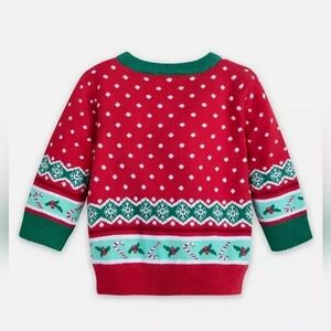 Adorable Disney Baby Mickey Mouse holiday sweater in excellent used condition. Festive red and green Fair Isle design with snowflakes, candy canes, and Mickey in a Santa hat. Perfect for Christmas photos or holiday parties!