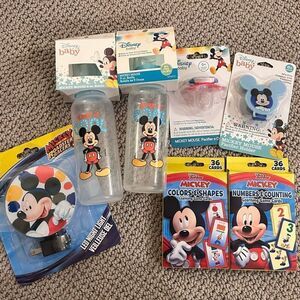 Disney Baby Mickey Mouse LOT 2 Bottles, Pacifier, Nightlight, Flash Cards Sealed