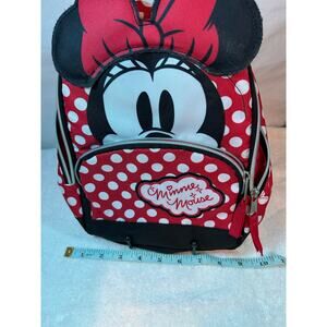 This adorable Disney Baby Backpack is approximately 9 x 11. It has been in storage, but clean inside and out. It will delight the youngest Minnie Mouse fan.
