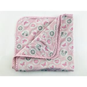 Disney Baby Minnie Mouse Pink Sherpa Style Blanket Bird Butterfly Flower Heart