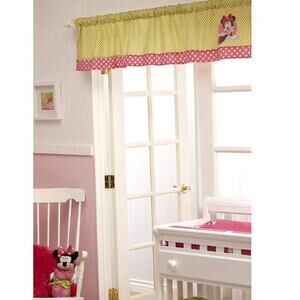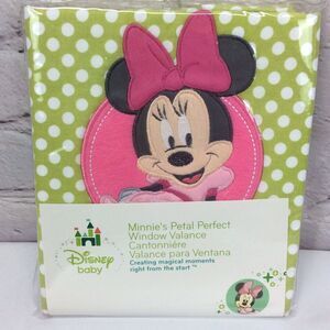 Disney Baby Minnie’s Petal Perfect Window Valance Curtain Green & Pink Polka Dot