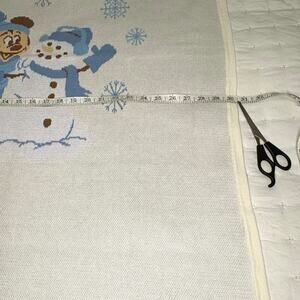 Adorable Disney Baby blanket featuring Baby Mickey building a snowman — soft, cozy, and perfect for a winter nursery. Made from thick, multi-ply organic cotton with beautiful intarsia knit detailing, this heirloom-quality blanket makes a timeless keepsake or baby gift.