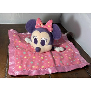 Disney Baby Pink Minnie Mouse Lovey Security Blanket Plush Toy Rattle Satin Trim