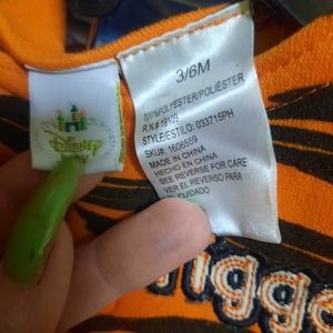 Disney Baby Tigger 2 piece footie pant and snap front sweatshirt. Tigger embroidery on front. Preowned EUC See all pictures as part of description. All items have been laundered, dry cleaned, steamed and or pressed.