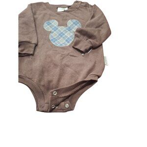 Disney Baby Unisex Brown Mickey Mouse Long Sleeve Bodysuit Sz 6-9 Months NWOT
