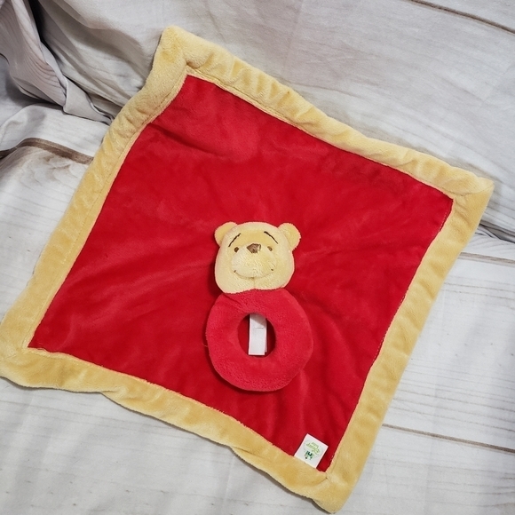 Disney Baby Winnie The Pooh Lovey Ring Rattle Mini Security Blanket 13" x 13"