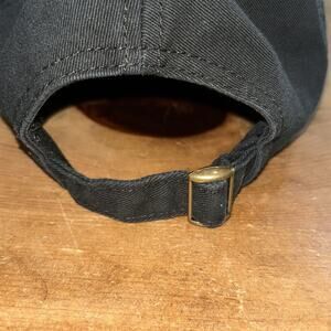 Stylish black cap featuring a green and tan embroidered character. Perfect for casual wear.