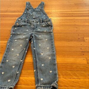 Disney Baby Gap Denim Minnie Mouse Polka Dot Overalls. 3 pockets in front of 2 pockets in back. Adjustable button straps. 100% cotton. Size 2 years old. Good condition.
