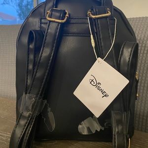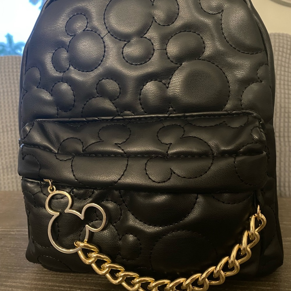 Black disney backpack with gold chain.