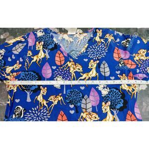 Disney Bambi Nurse Scrub Top Short Sleeve V-Neck Pockets Blue Womens Size XS