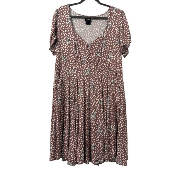 Disney Bambi Shirred Bodice Skater Dress 2X Stretch Challis Muave Feminine Chic