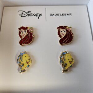 Authentic Disney x Baublebar The Little Mermaid Stud Earrings Ariel & Flounder Two Pair. New In Box.