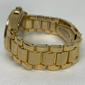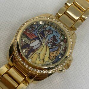 Disney Beauty And The Beast princess Belle Stained Glass Watch gold tone 41mm round case quartz analog , bracelet size 7”, in good condition battery installed