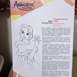 This updated edition Disney Animators' Collection doll is dressed for a village visit in a lace-trimmed satin provincial dress.