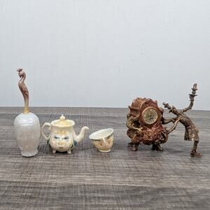 - Description: 2017 live action Beauty and the Beast movie figurines of the castle friends, Cogsworth, Lumiere, Chip, Mrs. Pots and Plumette