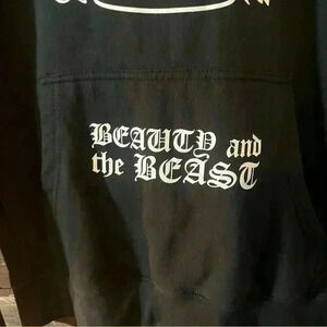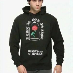 Embrace the magic of Disney's "Beauty and the Beast" with this medium-sized, black graphic tee from Mad Engine. Featuring a classic pullover hoodie style, this cozy top is adorned with a striking design that pays homage to the timeless tale. The soft cotton fabric ensures comfort and breathability, making it a great addition to any casual wardrobe.