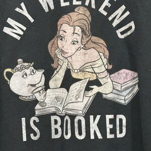 Disney Beauty and the Beast Booked Weekend Girls Slouchy Sweatshirt black Disney sweatshirt with playful graphic design. Quality Books Belle