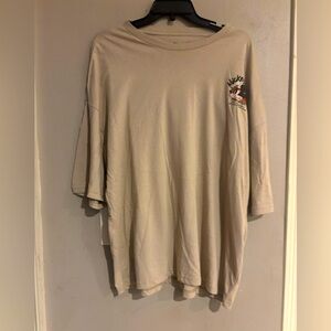 Beige t-shirt featuring Mickey and Friends logo. Comfortable cotton blend.