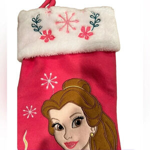 Disney Belle Pink Embroidered Christmas Stocking. NWOT
