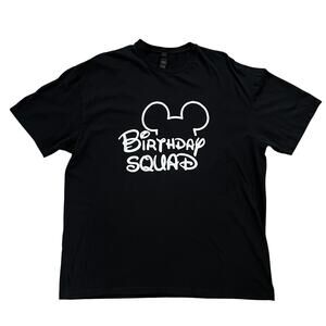 Disney Birthday Squad Men's Black Graphic Logo Tee Mickey Ears Design Size 2XL